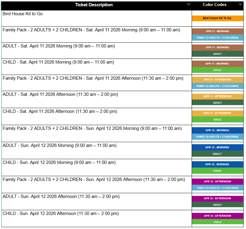 Every order confirmation email will include a ticket with a color that indicates whether the ticket is for April 11 or April 12, 2026, and whether it’s for the morning or afternoon. Additionally, it will specify whether the ticket is for an adult, child, or family pack.